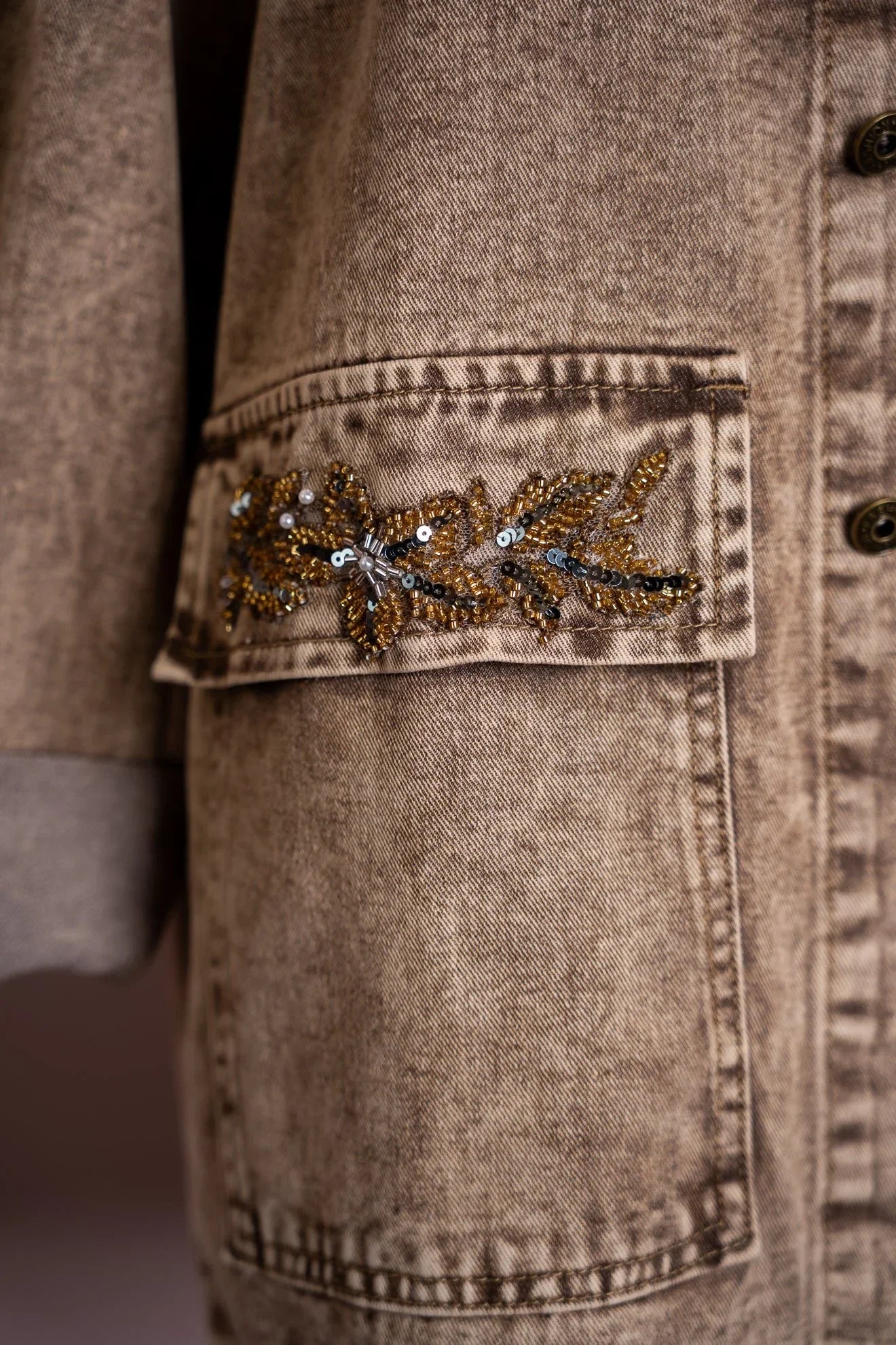 Finiture come bottoni e applicazioni metalliche, che garantiscono un dettaglio ornamentale e funzionale di alta qualità.
