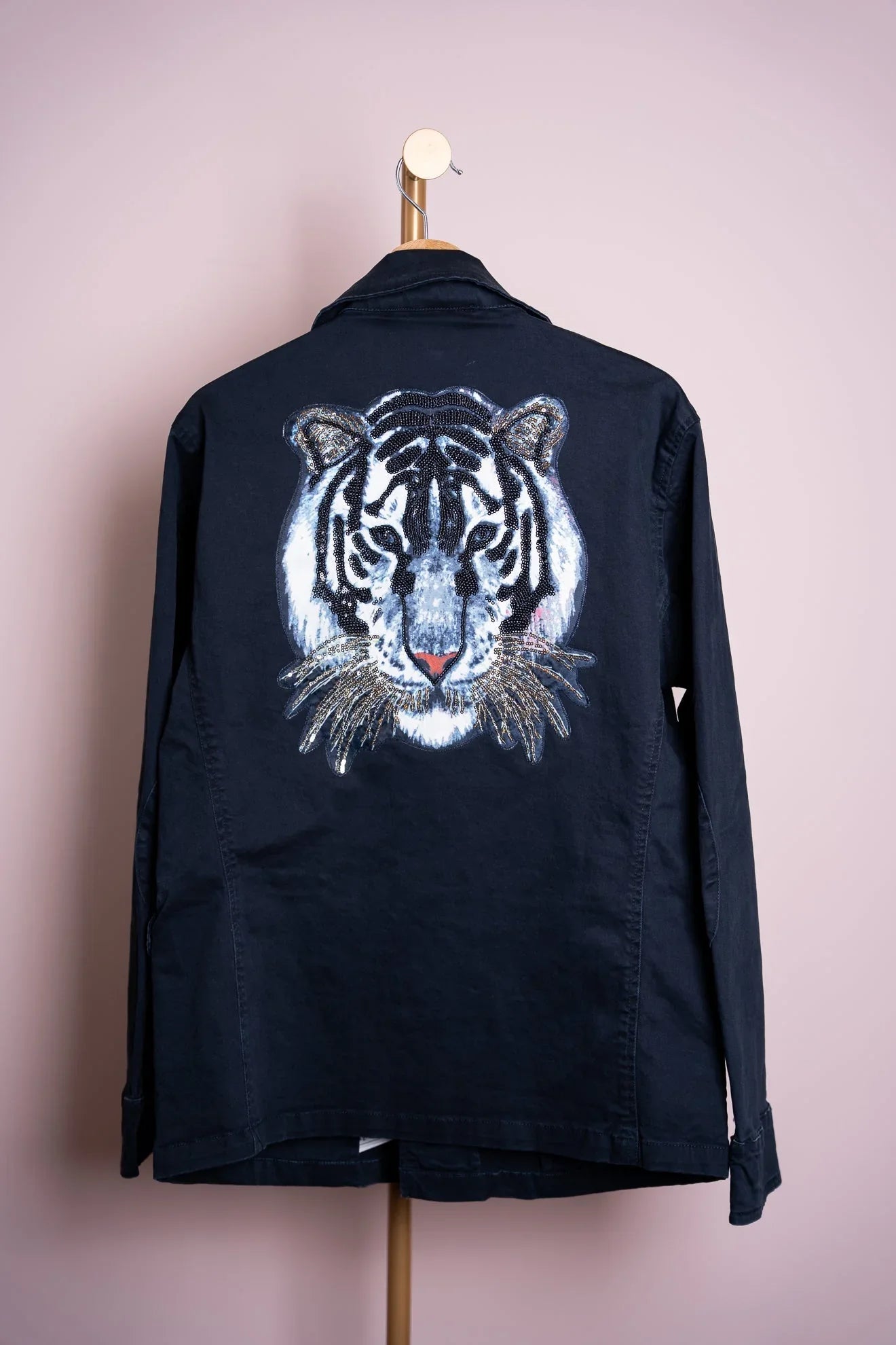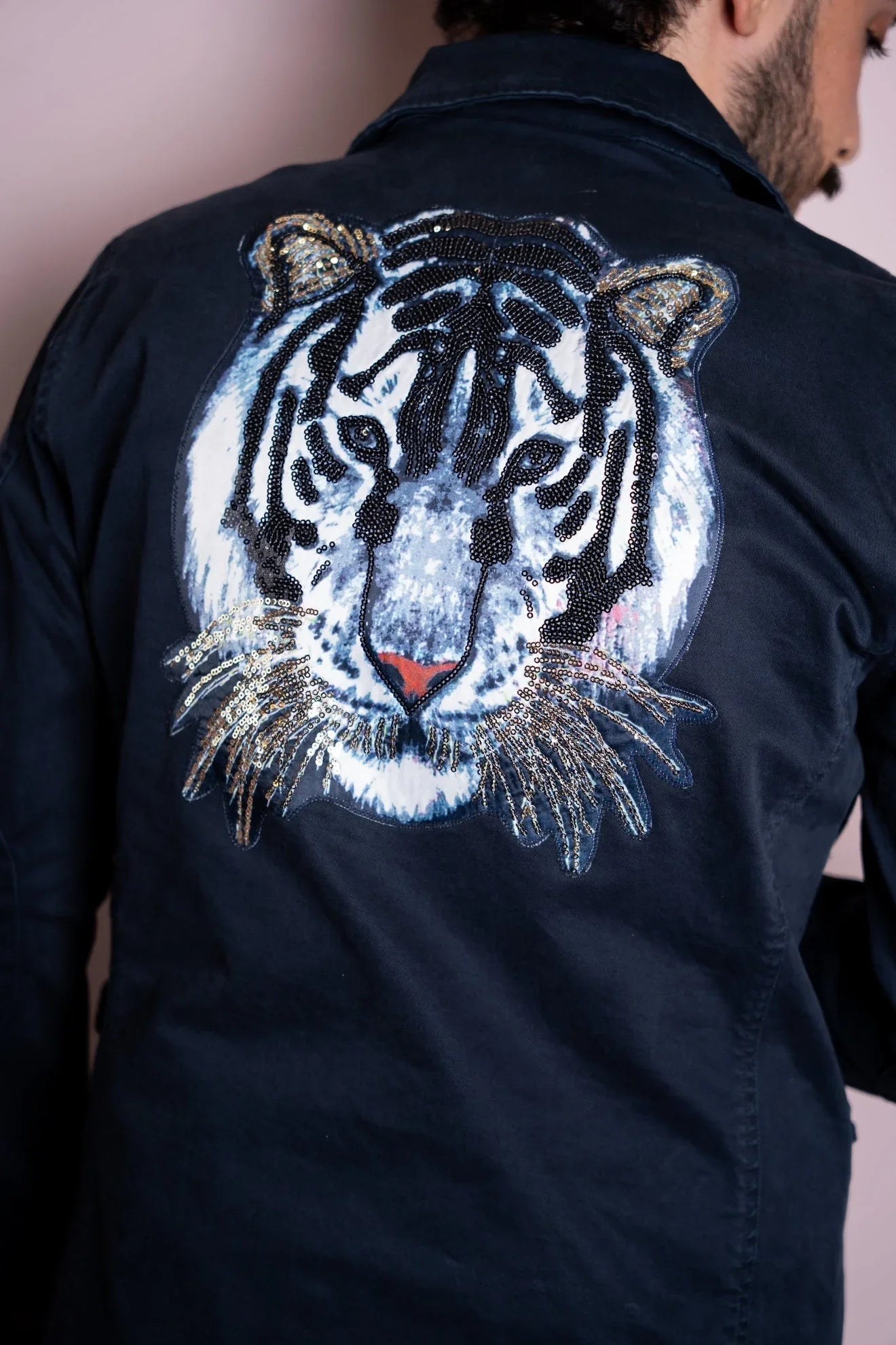 Giacca uomo in denim dal carattere deciso e dallo stile intramontabile. Il ricamo della tigre sulla schiena cattura l’attenzione e racconta forza, coraggio e libertà, tre parole che descrivono perfettamente chi la indossa.